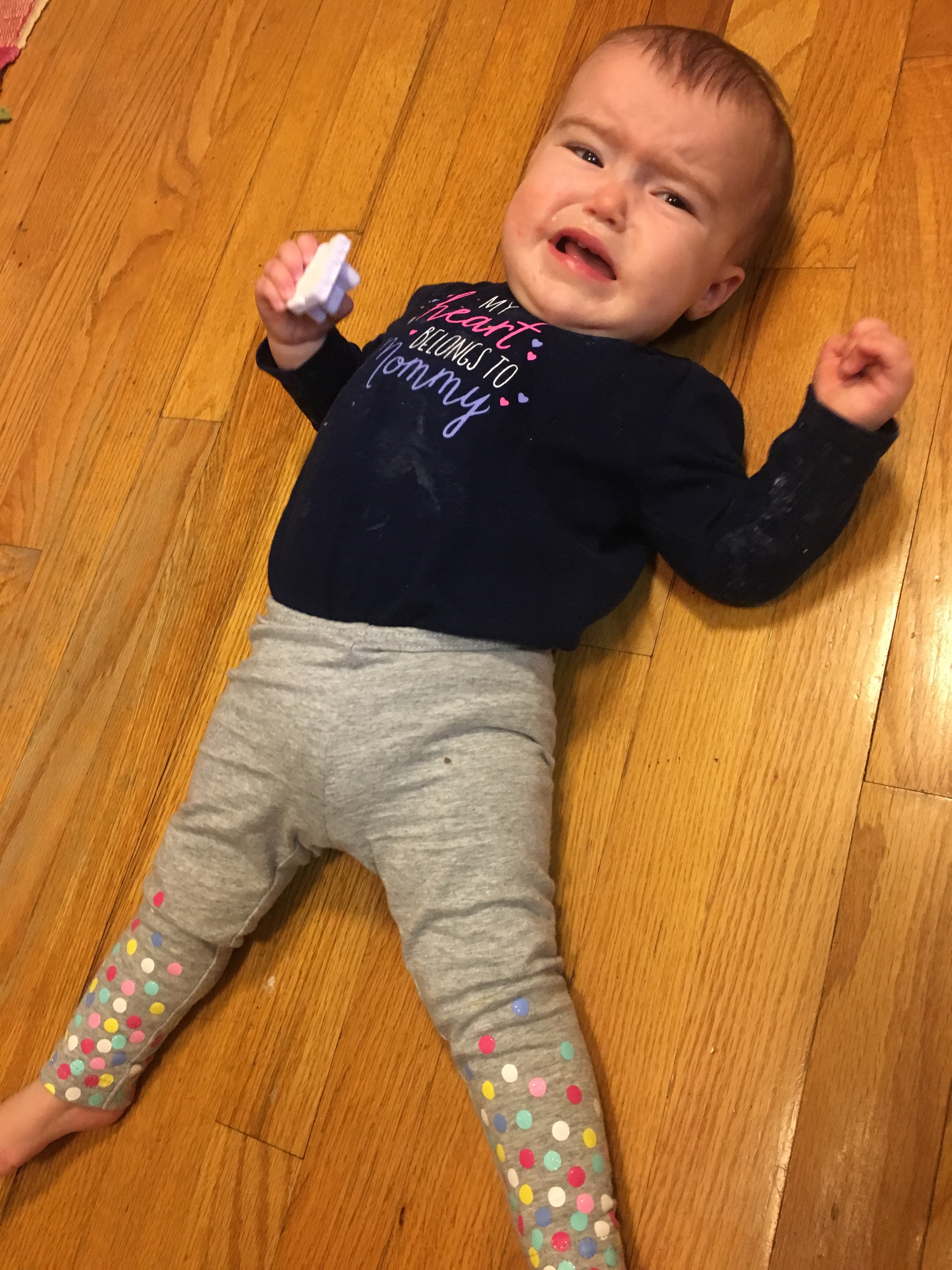 Looking back on these pictures, I can’t even recall why my children are crying. It probably is because I wanted to sit my daughter on the floor to play with toys and she wouldn’t detach. Or that I removed a choking hazard from her hand that she was trying to eat, or one of them was sick, or that I asked my son to wear “real pants” (aka any clothes that are not pajamas).